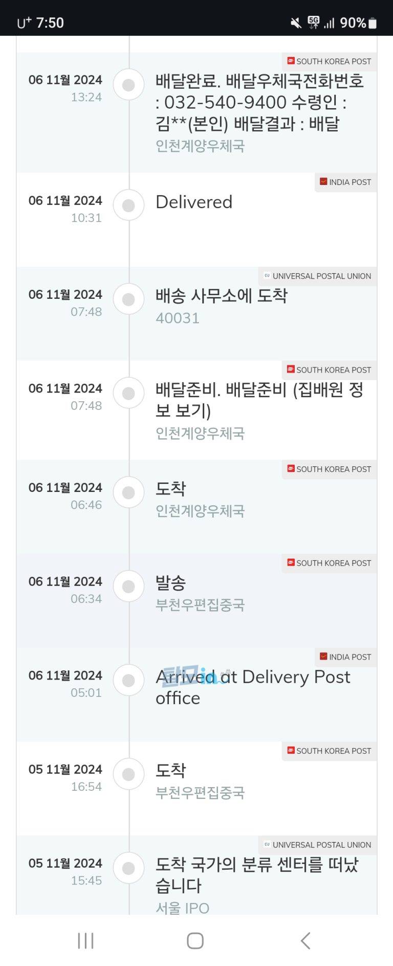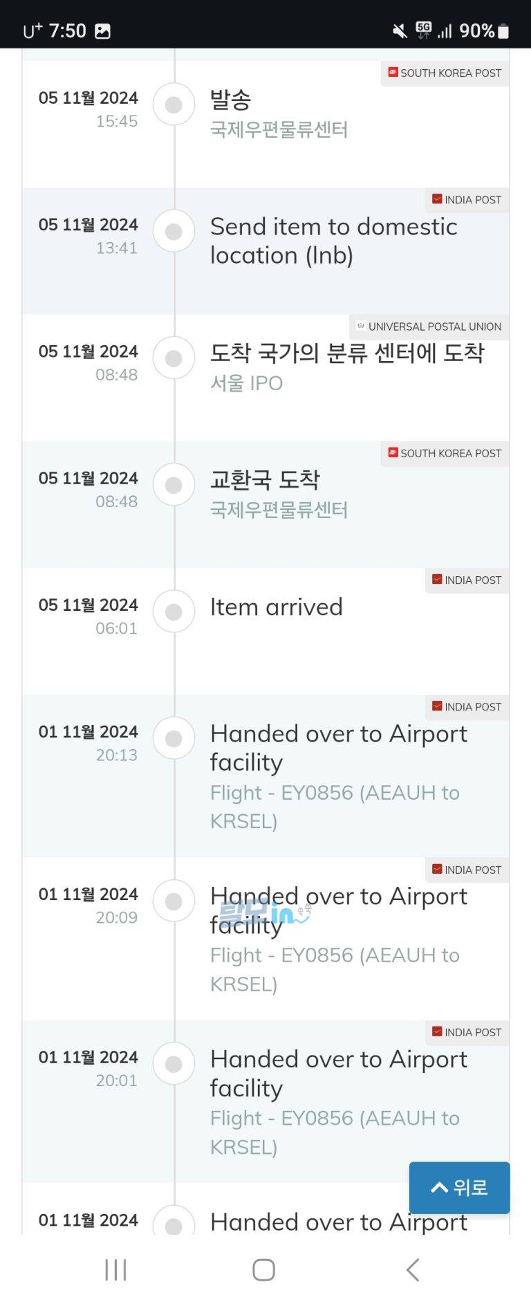 11월6일에받았으니 출고부터도착까지 11일걸렷습니다