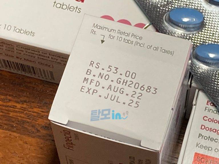 물품은 다른 분들처럼 핀페시아 6통, 파란 알약 10개 있네요.
